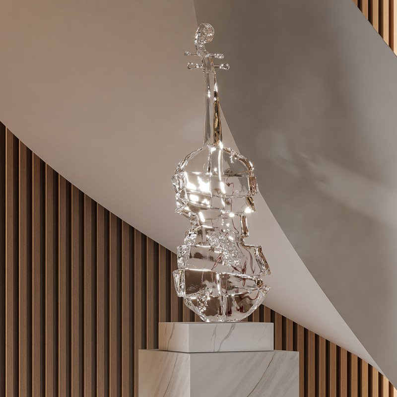 Crystal Violin Decor – Elegant Art Piece with Fiery Inlays