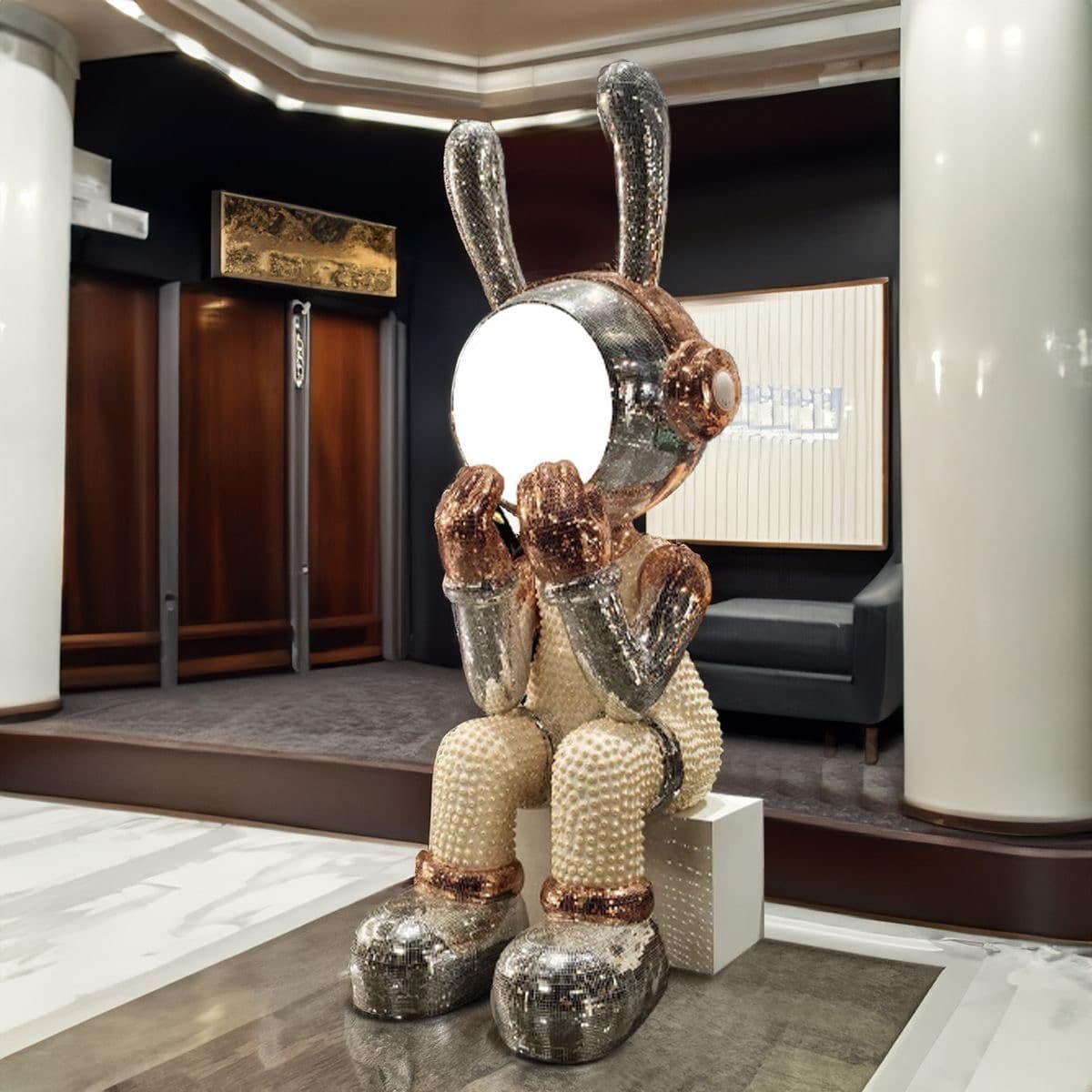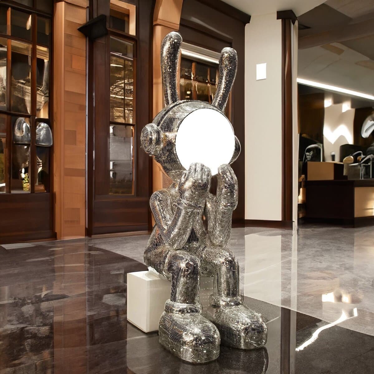 Sitting Silver Rabbit Bluetooth Speaker with LED Light