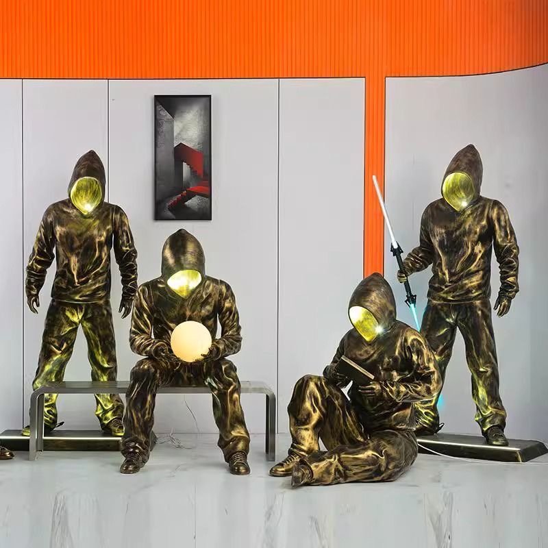 Life-Size Futuristic Illuminated Sculpture: Cosmic Balance Art Piece