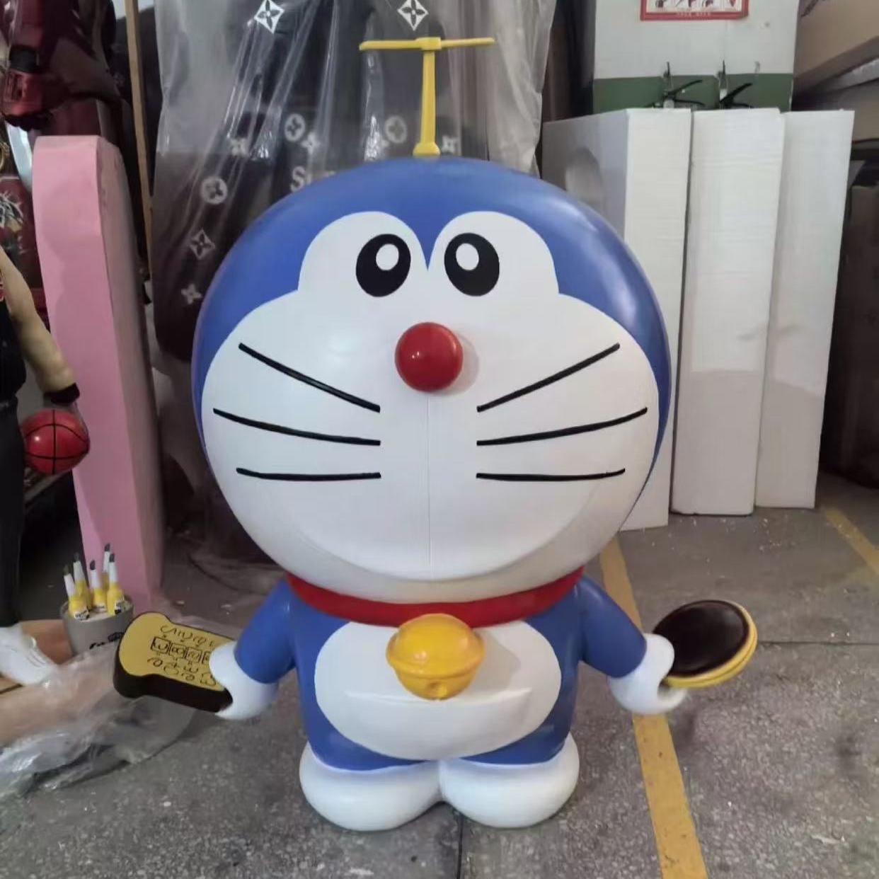 Life-Size Doraemon Plush Figure – Classic Blue Robo-Cat with Red Scarf & Dorayaki