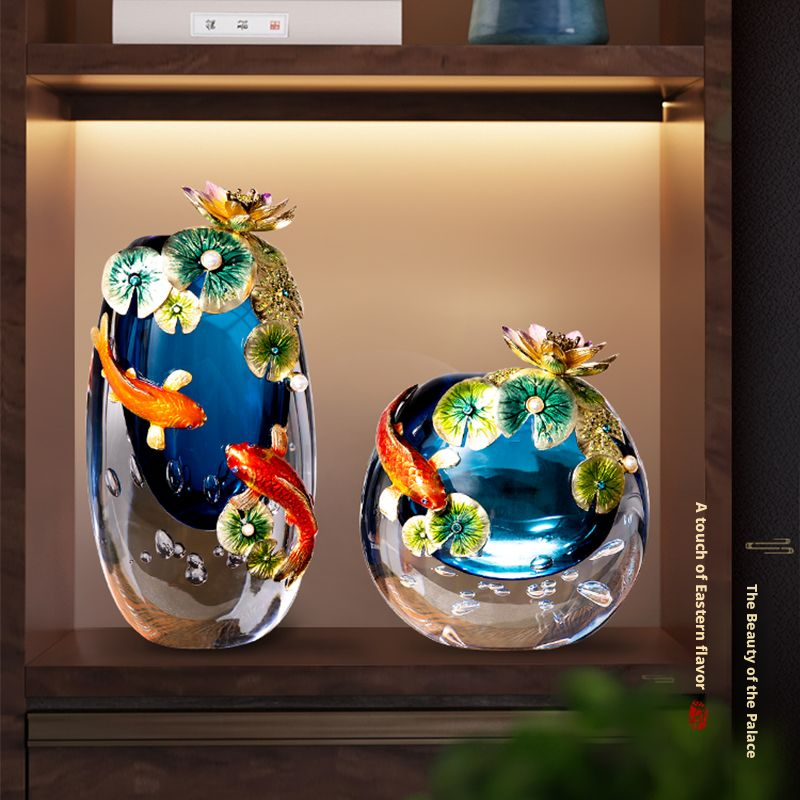 Colored Glaze Vase Ornament with Carp and Lotus Decorations
