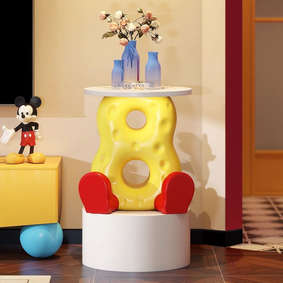 Cheese-Shaped Resin Nightstand with Motion Sensor Light: Playful & Practical Decor