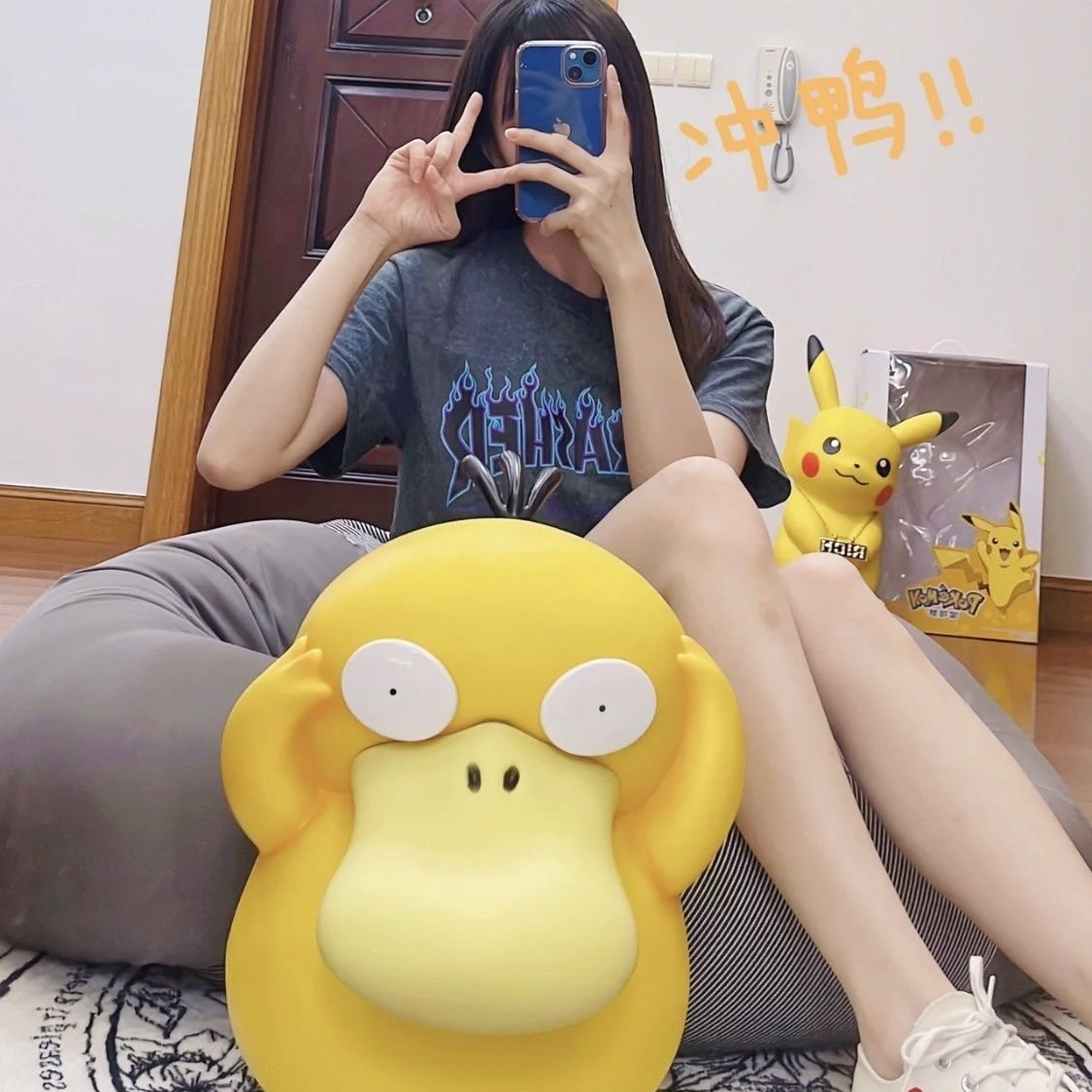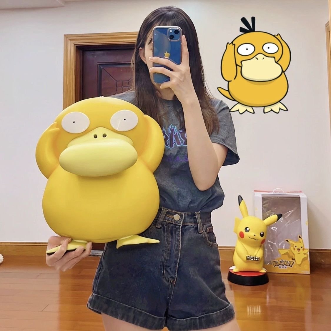 This custom 37 – centimeter – tall statue features Psyduck, the beloved Pokémon, in a comically angry pose. With its fists clenched, eyebrows furrowed, and cheeks puffed with red blush, the statue captures Psyduck’s exaggerated, irritable expression perfectly. The bright yellow body, creamy beak, and black tuft of hair are vividly rendered, staying true to the character’s original design. Standing on a simple base, this piece is ideal for Pokémon collectors, fans of cute – yet – feisty figures, or anyone looking to add a fun, whimsical touch to their decor.