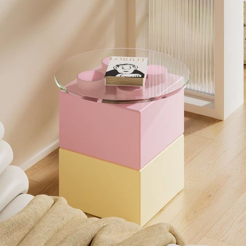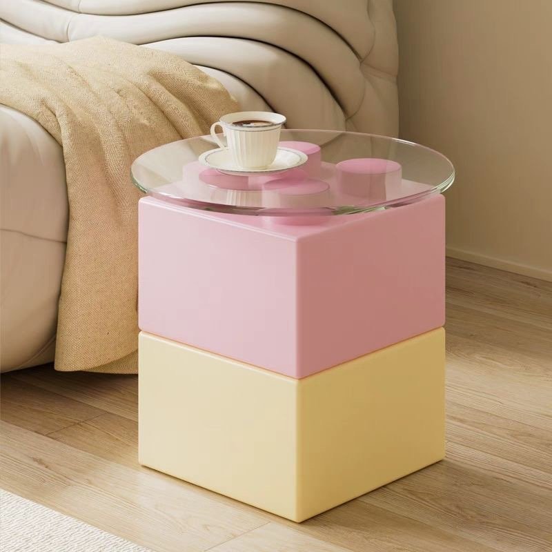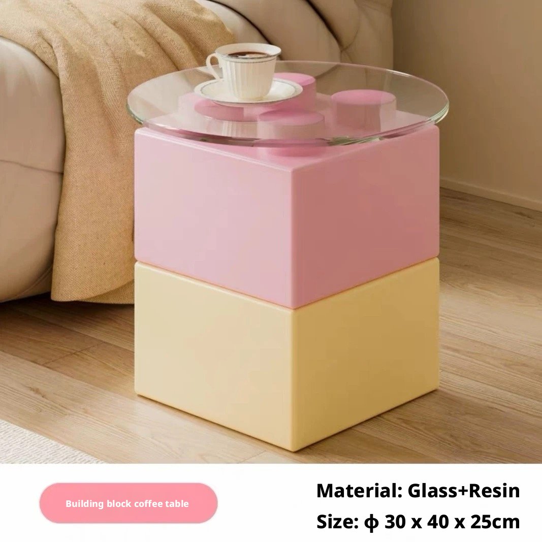 Item name:Block-Style Side Table with Glass Top