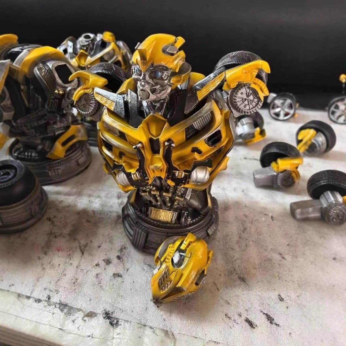 This 23cm – tall collectible model of Bumblebee from Transformersfeatures a unique double – head design, including both the robot head and the iconic helmet. Meticulously crafted, it showcases Bumblebee’s signature yellow armor with realistic metallic textures, silver – toned accents, and detailed mechanical structures (such as the chest panels and joint mechanisms). The robot head has expressive blue eyes, while the helmet retains the classic beetle – like shape with precise panel lines. Made from high – quality resin or alloy (depending on the version), this model ensures durability and fine details, making it a must – have for Transformersfans, model collectors, or anyone who appreciates sci – fi mecha art. Display it in a showcase, on a desk, or as part of a larger collection to highlight Bumblebee’s dual – form charm and exquisite craftsmanship.