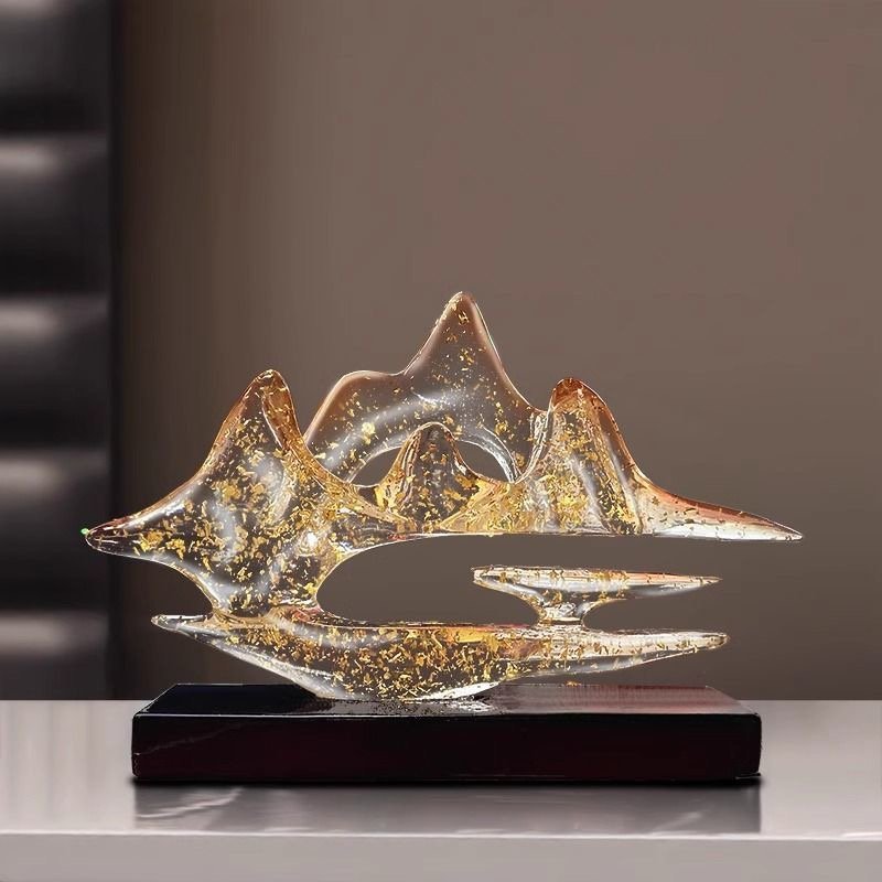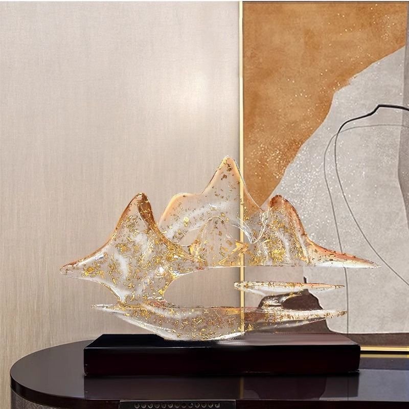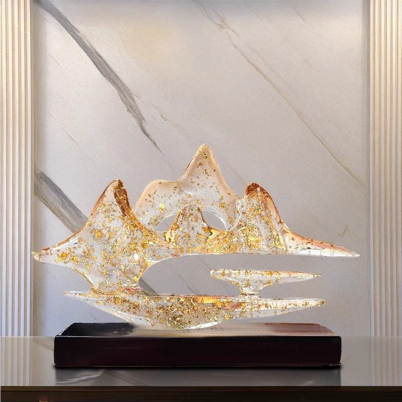 This image showcases the “Cloud Mountains & Golden Peaks” decorative sculpture, a piece that masterfully blends natural inspiration with artistic craftsmanship.