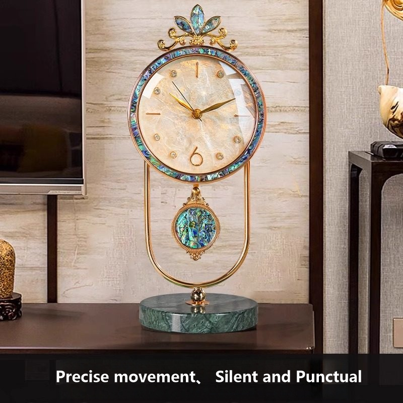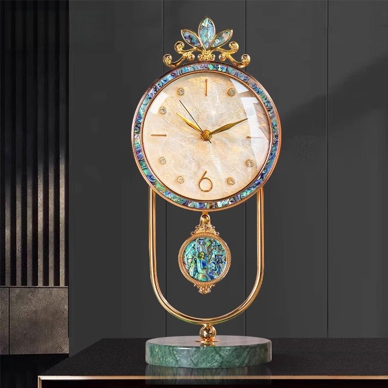 Material: Marble base+alloy bracket+shell dial+colored shell frame