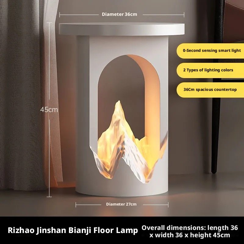 This modern cylindrical floor lamp combines sleek design with smart functionality. Featuring a spacious 36cm tabletop and an arched cut-out that emits a warm amber glow—evoking the “sunshine on golden mountain” aesthetic—it offers 0-second motion sensing and two lighting colors. With compact dimensions of 36×36×45cm, this lamp adds both ambient illumination and artistic flair to any contemporary space.