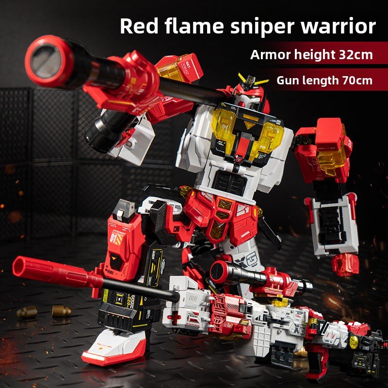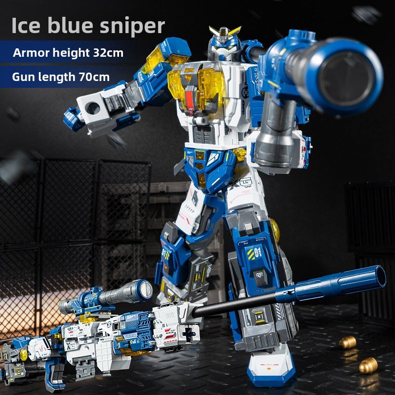 This transformable robot figure offers an exciting dual – mode experience, seamlessly switching between a powerful mecha robot and a high – precision sniper rifle.  the robot mode features articulated joints for dynamic posing, realistic mechanical paneling, and a futuristic, robust design. The sniper rifle mode is highly detailed, with a textured grip, a simulated scope, and ammunition – like components. Crafted with durable materials, it balances sturdiness with fine detailing, making it a perfect collector’s item for mecha fans, sci – fi enthusiasts, and lovers of transformable toys. Display it as a dynamic robot or a realistic weapon — the choice is yours!