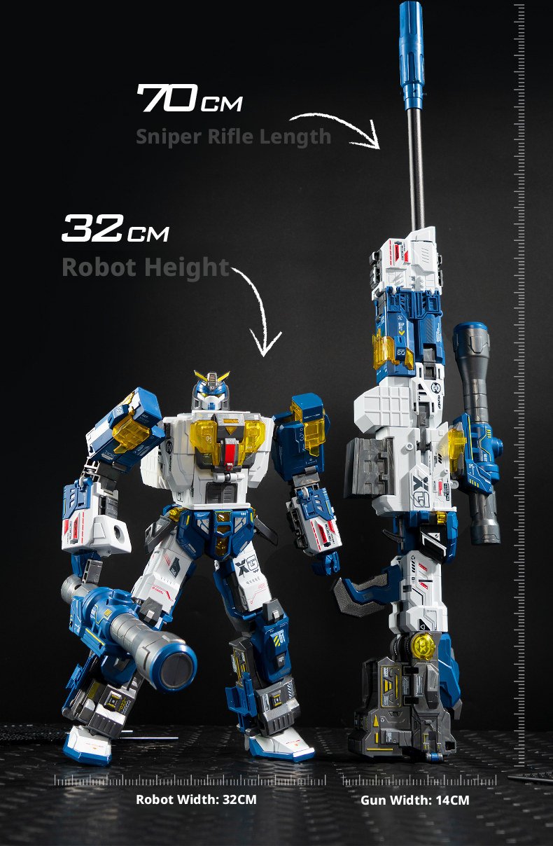 Size:Robot Form:32 cm High, Sniper Form:70 cm Long  and Capable of firing soft pellets.