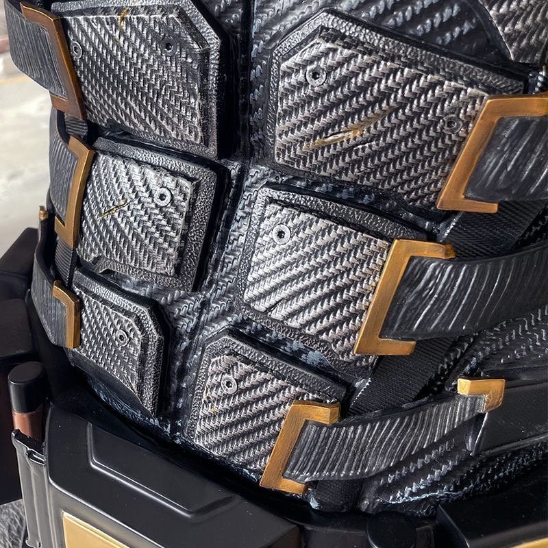 Step into the role of Gotham’s guardian with this premium, life-size Batman cosplay costume. Featuring a detailed black bodysuit enhanced with striking metallic gold accents, the set includes a sculpted helmet, a flowing cape, and tactical armor that perfectly captures the Dark Knight’s powerful silhouette. Worn here in a dynamic ready stance, the costume stands out even against a raw, urban-style backdrop—making it ideal for cosplay events, photo shoots, or as a statement display piece. Built for presence, detail, and authenticity.
