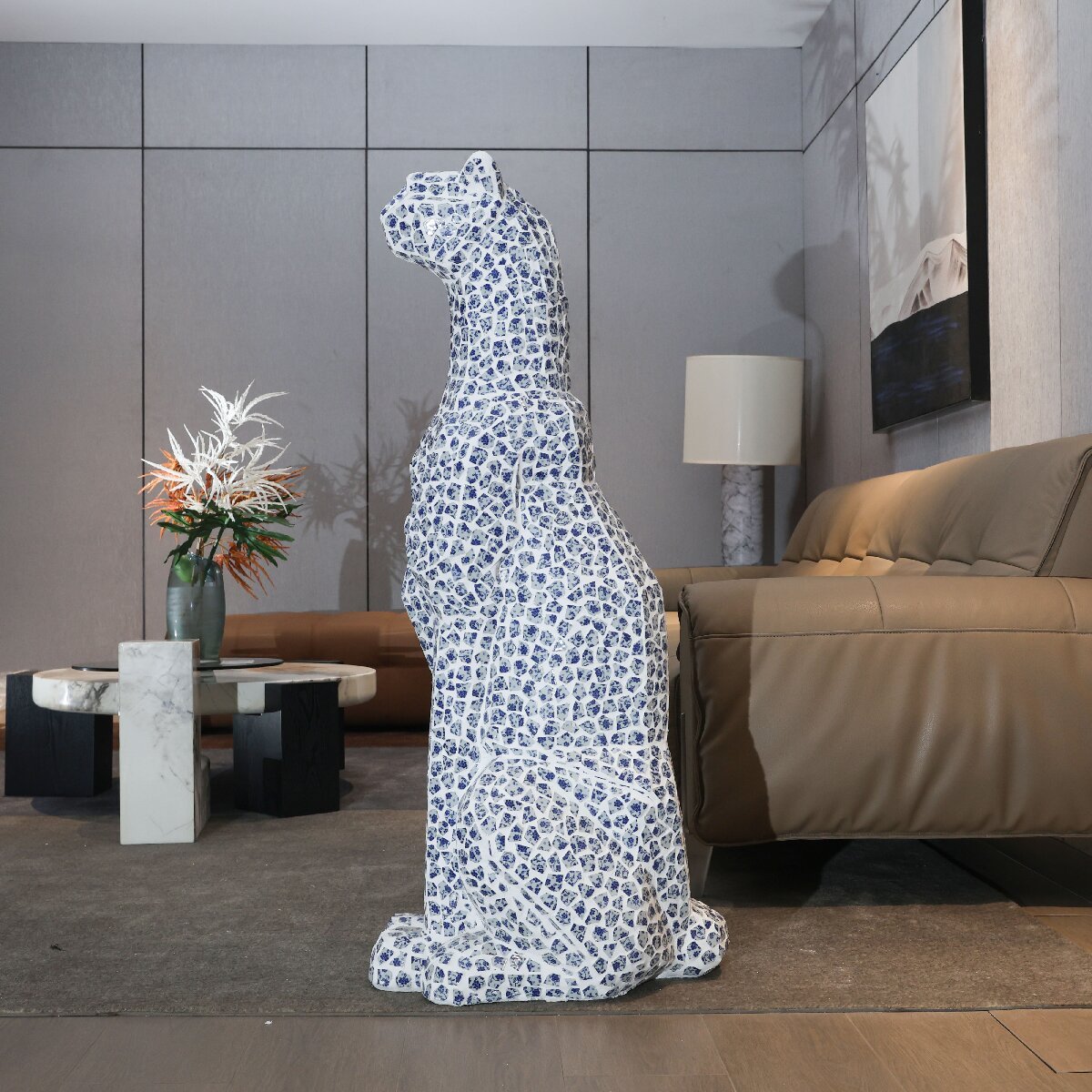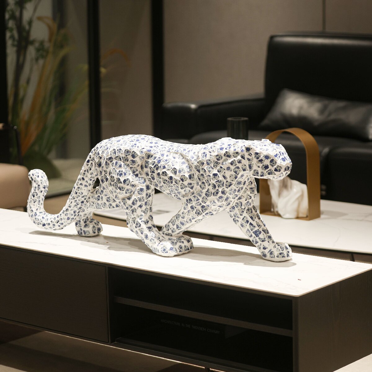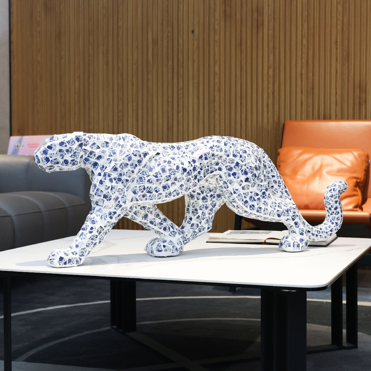 Item name:Majestic Porcelain Leopard Statue (Blue and White Floral Pattern)