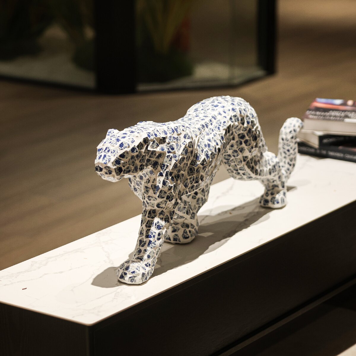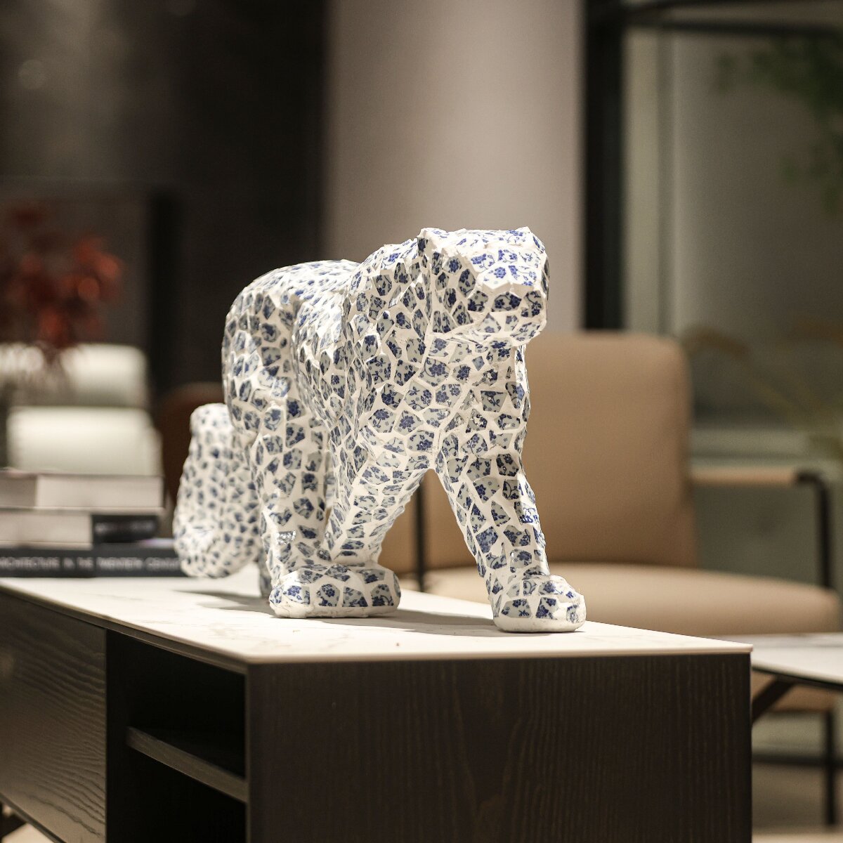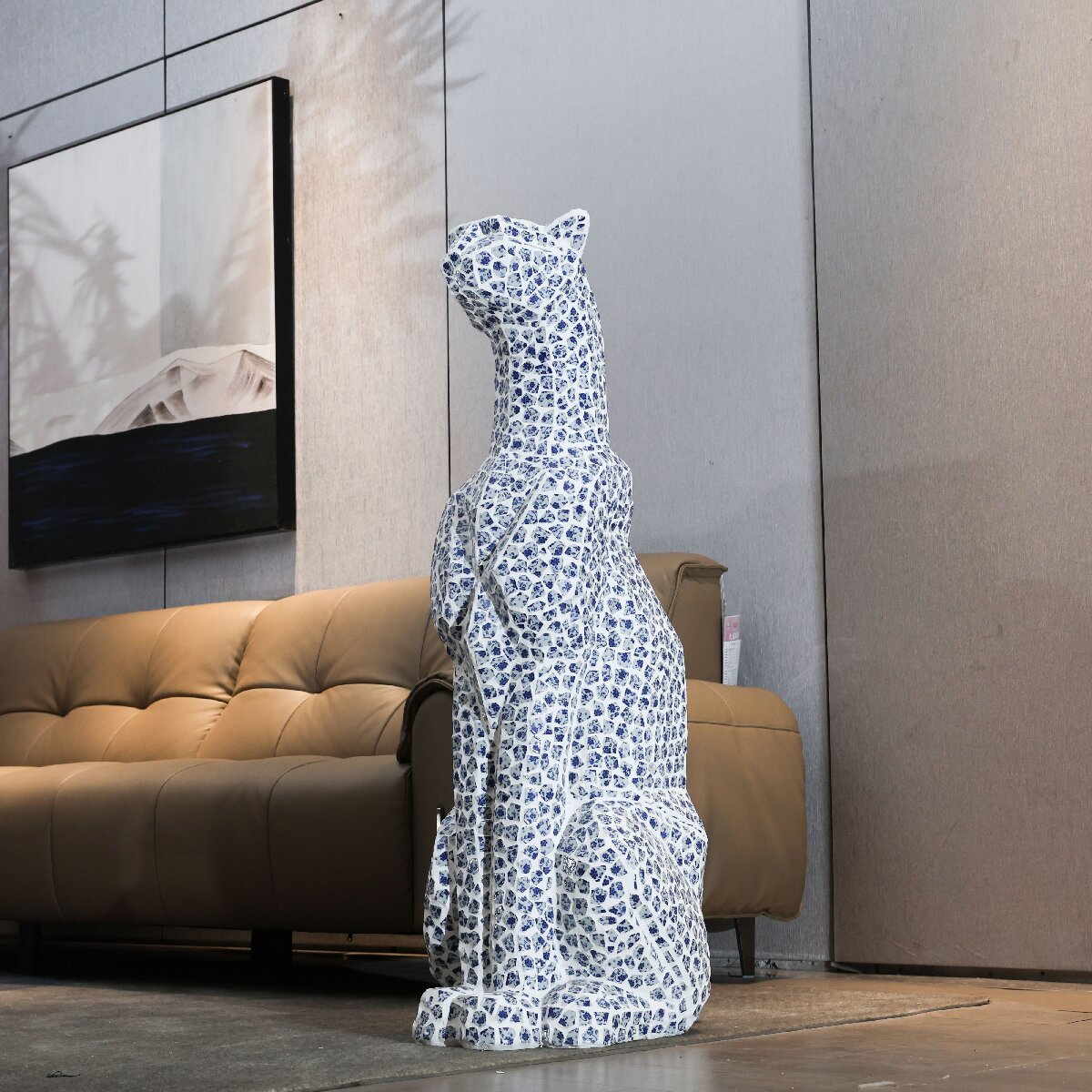 Item name:Majestic Porcelain Leopard Statue (Blue and White Floral Pattern)