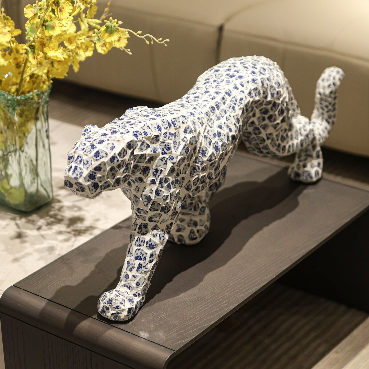 Majestic Porcelain Leopard Statue (Blue and White Floral Pattern)Majestic Porcelain Leopard Statue (Blue and White Floral Pattern)